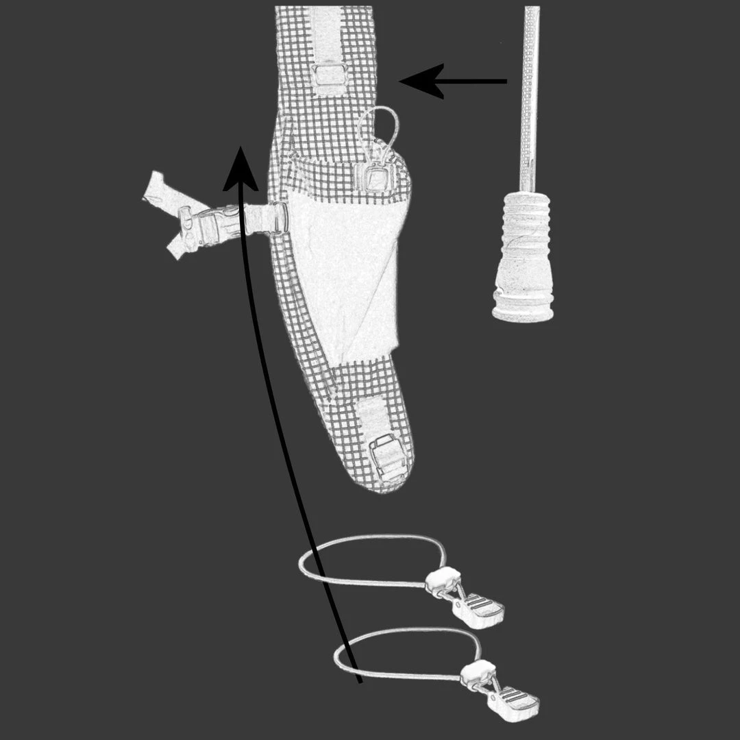 A simple solution for securing your Silver Shadow umbrella to shoulder strap of your backpack and allowing both hands to be free.Â