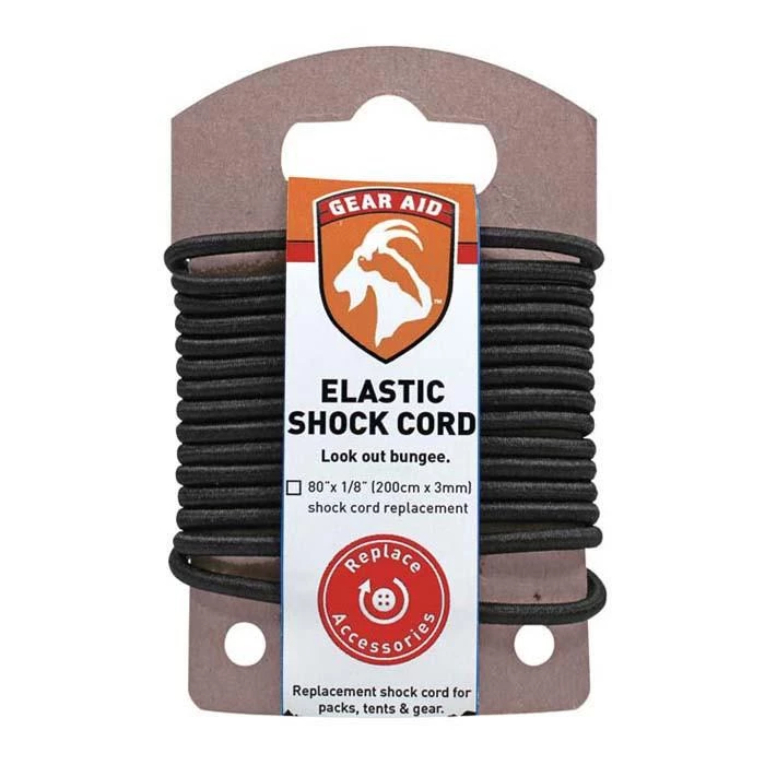 7’ of Elastic Shock Cord for all repair kits. Use it to tighten tarps/hammocks, replace cord in tent poles or jackets, or even fasten gear to packs. A versatile tool that every outdoor enthusiast should have, this 7’ of shock cord is a standard length that can get you out of many unexpected situations. The Elastic Shock Cord is one of many no sew replacement parts from Gear Aid.