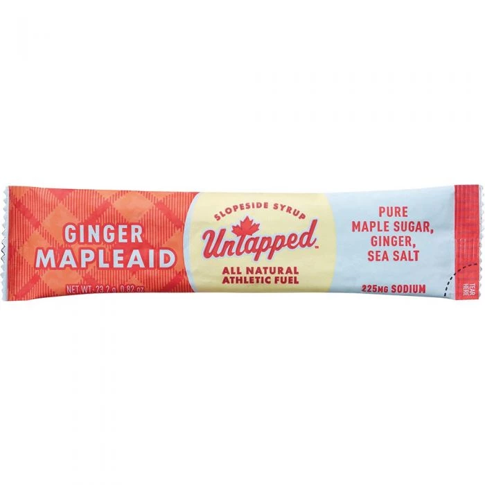 Untapped Mapleaid is an electrolyte drink mix made with Maple Sugar and Sea Salt. 23.3 gram single serving stick makes 12 fl oz of drink.