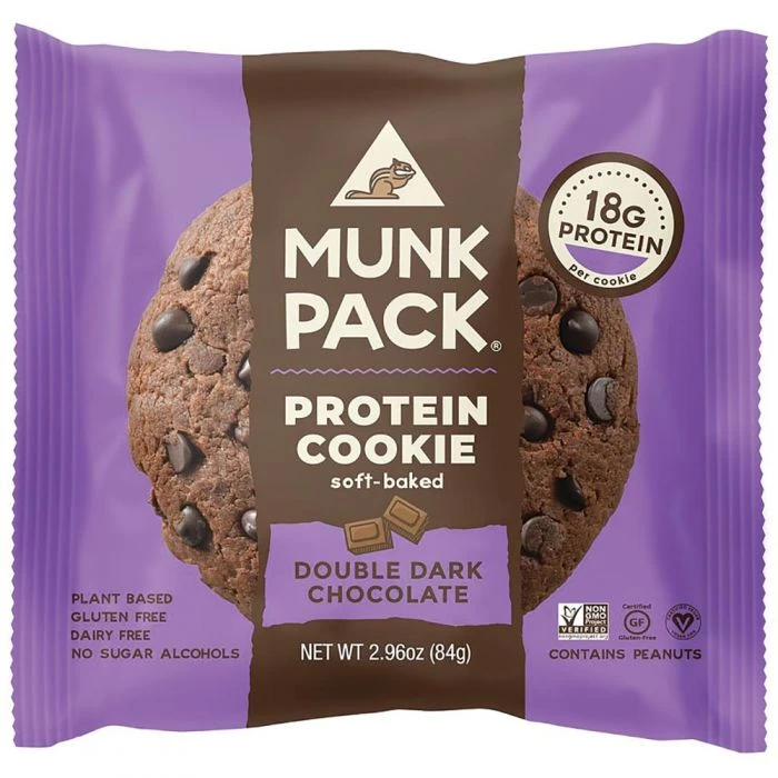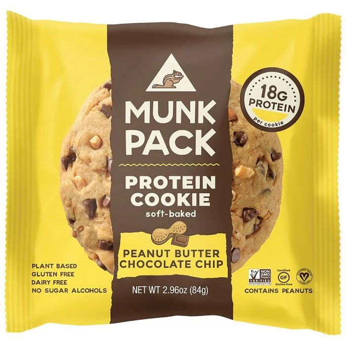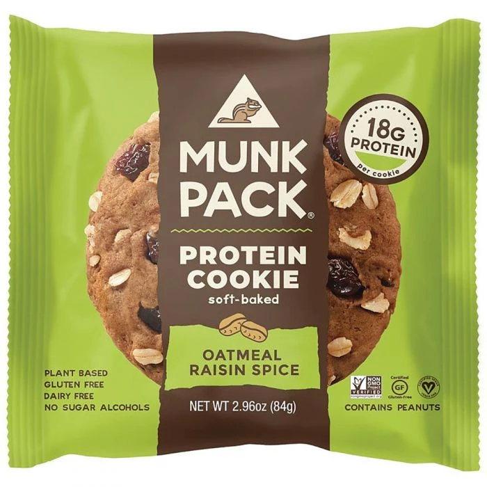 Munk Pack Protein Cookies are powered with 18 g. of plant protein & 6 g. of fiber, these cookies are a fun and delicious source of feel-good, balanced nutrition. Certified Gluten free, Non-GMO, Kosher, No soy, egg, dairy, trans fat, HFCS, sugar alcohols or inulin & FOS.