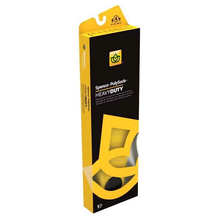 The Spenco Polysorb Heavy Duty Insoles are ideal for workers seeking all day comfort and cushioning support. They feature a lightweight polyurethane foam that provides extra cushioning and shock absorption that has a layer of SpenCore material that measures 5/32”. They have a heel strike pad with forefoot pad that provides additional cushioning and energy return. A 4-way stretch fabric with Silpure Antimicrobial treatment helps prevent blisters while controlling odor.