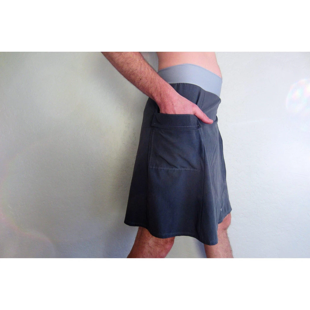 Guys & girls both love the freedom of the open wrap unisex Adventure Kilt design. This kilt allows for a longer stride without sacrificing coverage. On breaks or at the end of the day, your kilt transforms to shorts. Â