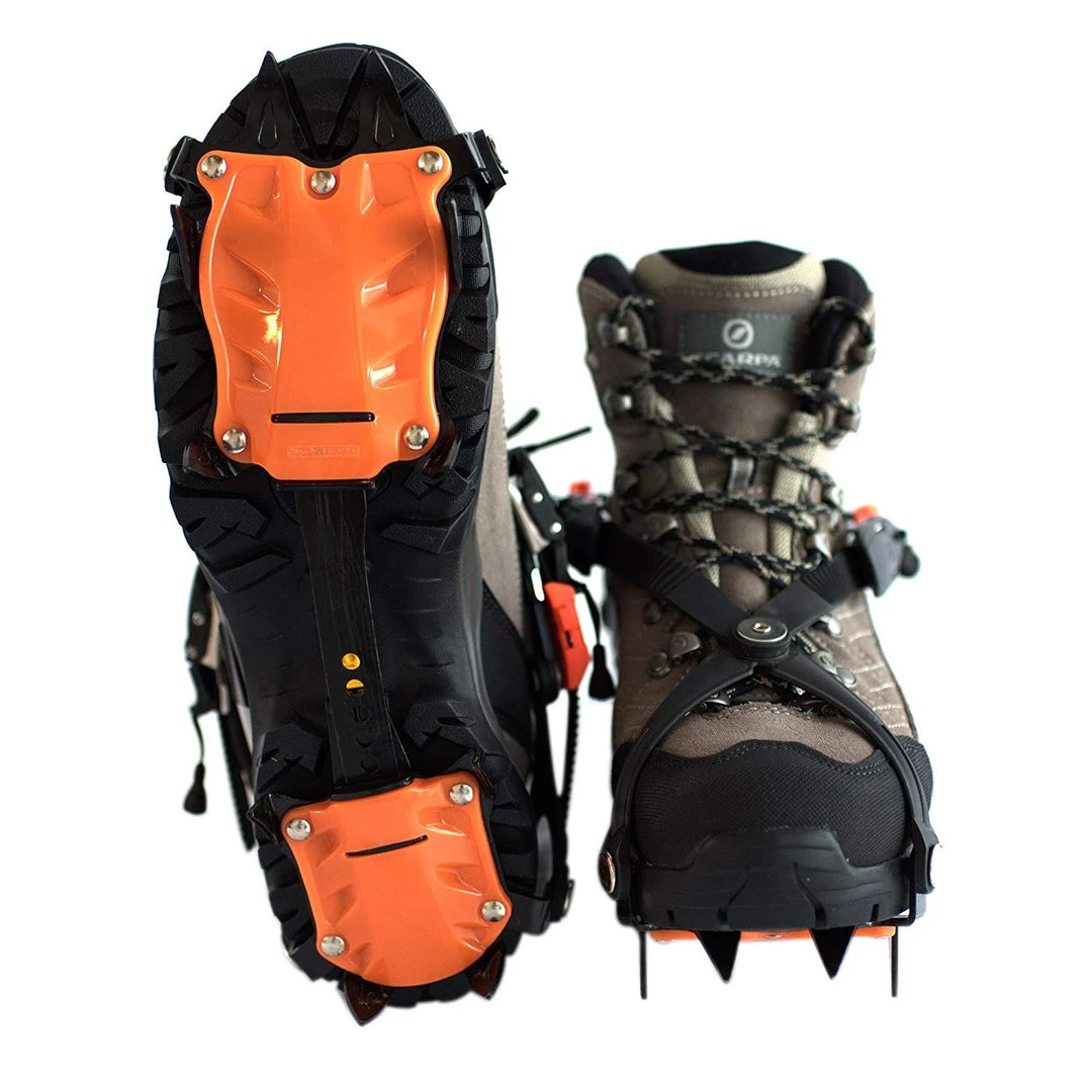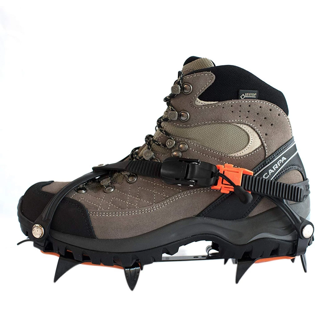 - Utilizing simple ratchet buckle bindings, these crampons can be fastened to most footwear effortlessly.