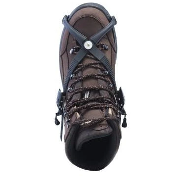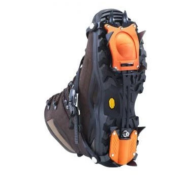 - X-shaped polycarbonate harness reduces pressure points found in many conventional crampons.