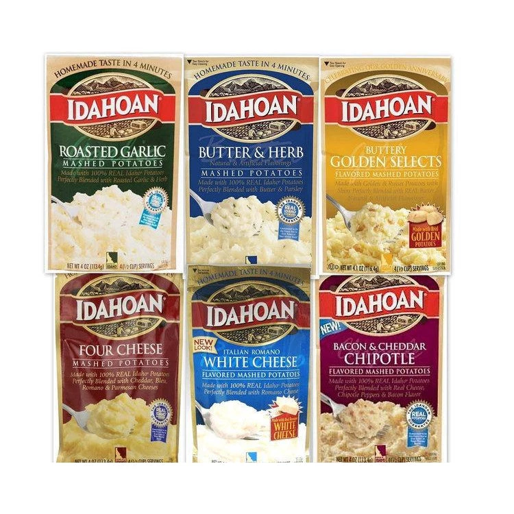 | Flavor | Four Cheese, Sour Cream & Chives, Roasted Garlic & Parmesan, Roasted Garlic, Smokey Cheese & Bacon, Cheddar & Sour Cream, Buttery Homestyle, Applewood Smoked Bacon, Four Cheese (8 Serving Size) |